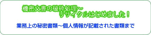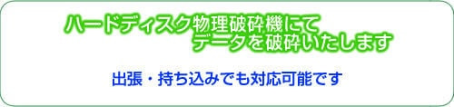 HOME > 機密文書処理 出張処理の場合 ※機密書類の破砕処理は予約制になります。※処分は機密処理契約書の締結が必要となります。 1.大型シュレッダー搭載車でお客様のところまで出張いたします。 2.車載シュレッダーで目の前で破砕 動画でご覧いただけます 3.処理後は古紙としてリサイクルに 破砕証明書を発行いたします お客様のお持ち込みまたは弊社で回収の場合 ※機密書類の破砕処理は予約制になります。※処分は機密処理契約書の締結が必要となります。 1.当方魚町工場設置の大型シュレッダーで処分いたします。 2.処理の様子を室内のモニターでご覧いただけます 動画でご覧いただけます 3.処理後は古紙としてリサイクルに 破砕証明書を発行いたします 破砕機 破砕後のハードディスク