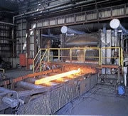 製鉄所に納入された鉄スクラップは溶鉱炉に入れられ、高熱で溶かされます。